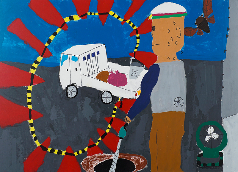 『あついところでおしごとをがんばっているところです』