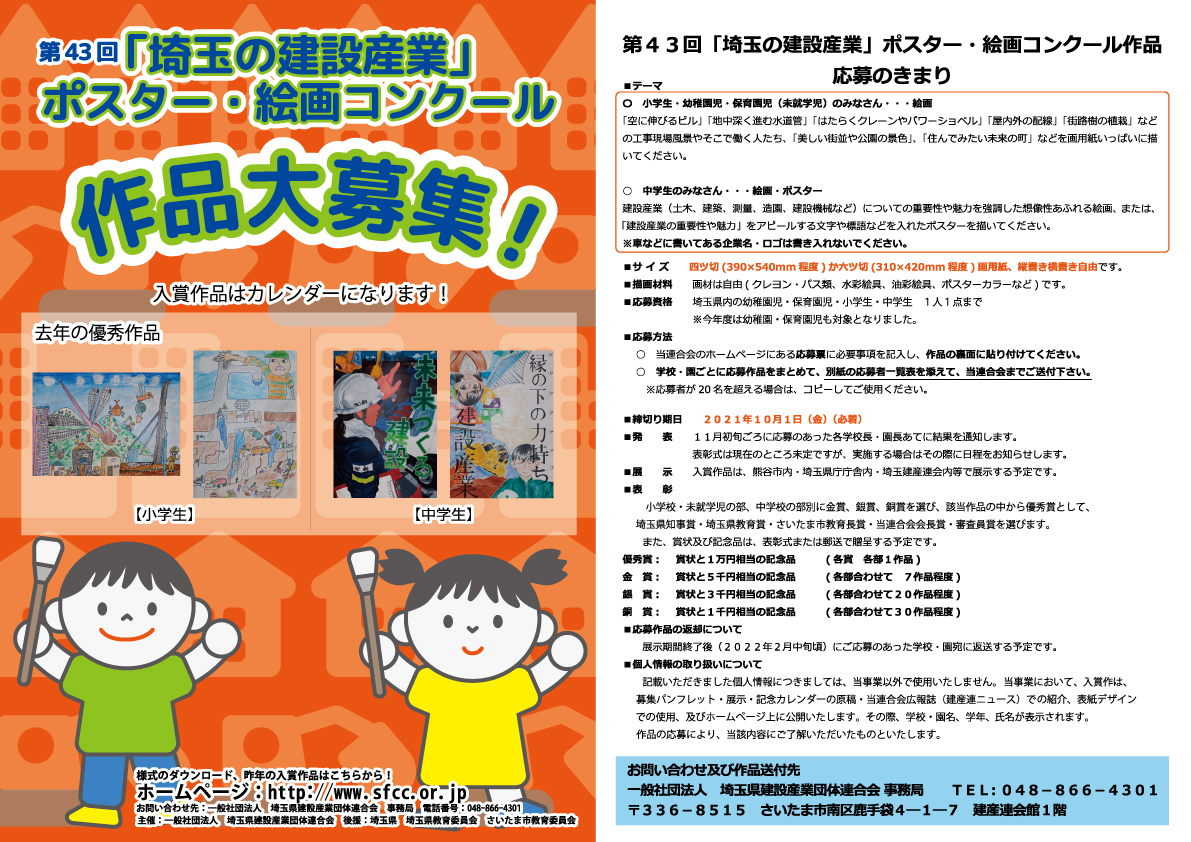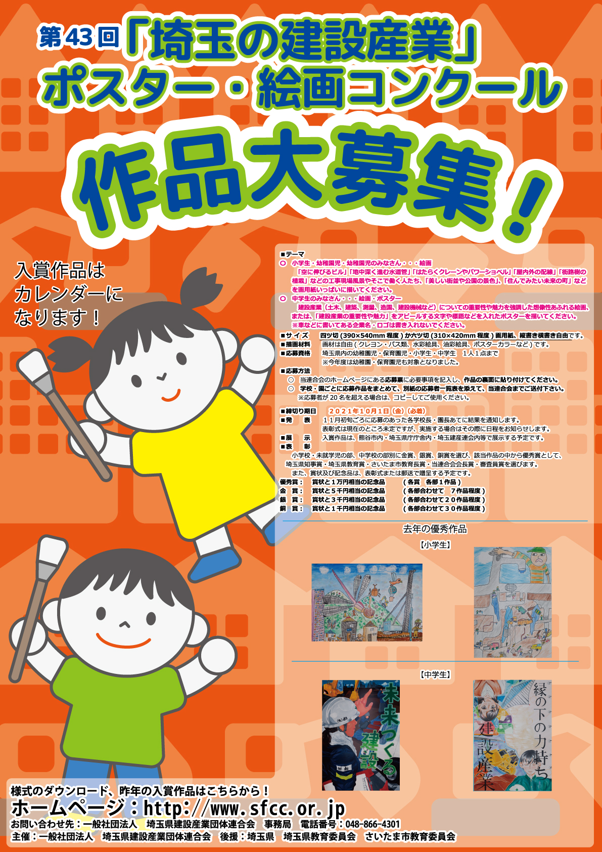 当連合会では、安全・安心な社会を造る建設産業の重要性や魅力をアピールすることを目的に『埼玉の建設産業』ポスター・絵画コンクールを実施しております。